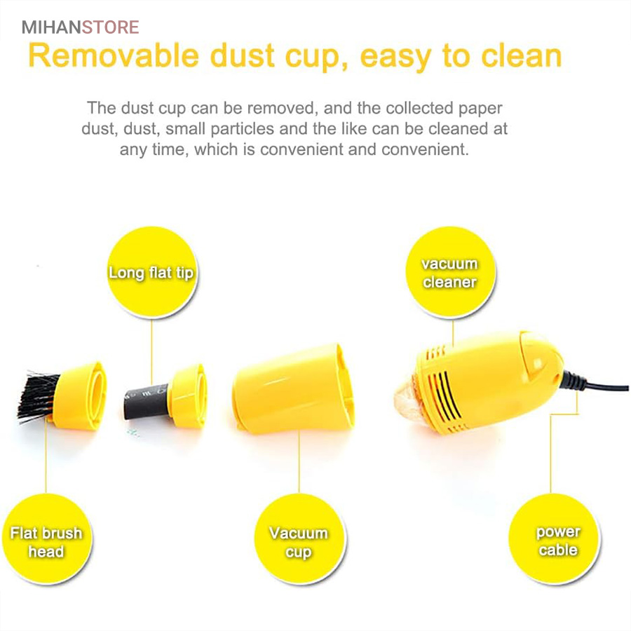 Computer Mini Vacuum یا همون جارو USB. با کمک این جارو کوچیک می تونید گرد و غبار بین کلید های کیبورد یا منافذ خاک گرفته کامپیوتر و یا مانیتور رو تمیز کنید. از اون جایی که بدون باتری و با کابل USB کار میکنه خیلی انتظار مکش قوی نداشته باشید چون فقط برای جمع آوری گرد و غبار مناسبه.  دو تا سری متفاوت هم داره که یکیش از پلاستیک نرم و انعطاف پذیره تا به راحتی جاهایی مثل بین کلید های کیبورد رو تمیز کنه و سری دیگه هم که دارای برس هست می تونه به جمع آوری تکه های بزرگتر کمک کنه.
